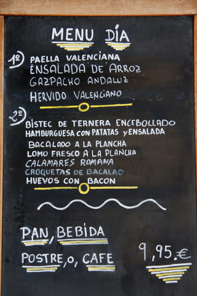 It is very common in northern Spain to find restaurants that offer menú del día (menu of the day). This menu is advertised on posters or small chalkboards outside of each restaurant showing you the special dishes they offer for today’s lunch, as well as the set price for the entire meal.