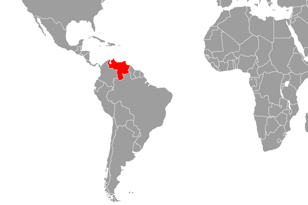 Venezuela is a country on the northern coast of South America, to the east of Colombia and north of Brazil. It includes several islands just off its coast in the Caribbean Sea (not shown).