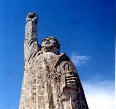 people have turned to tourism to earn income. Many shops line the narrow lanes, selling food and crafts to the many tourists that come by boat. There are no cars on the island, which makes walking very pleasant. At the top of the island is a concrete statue of Mexican independence fighter Jose Maria Morelos that is 156 feet high. One can go inside the statue and climb to the top and look out over the town and the lake. A relaxing half hour boat ride returns visitors to the mainland.