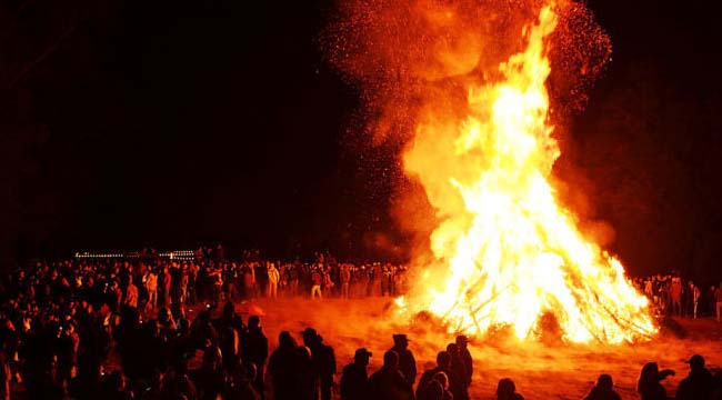 of families in many towns around the country meet at the town plaza to witness the bonfire burning. Supposedly, the fire